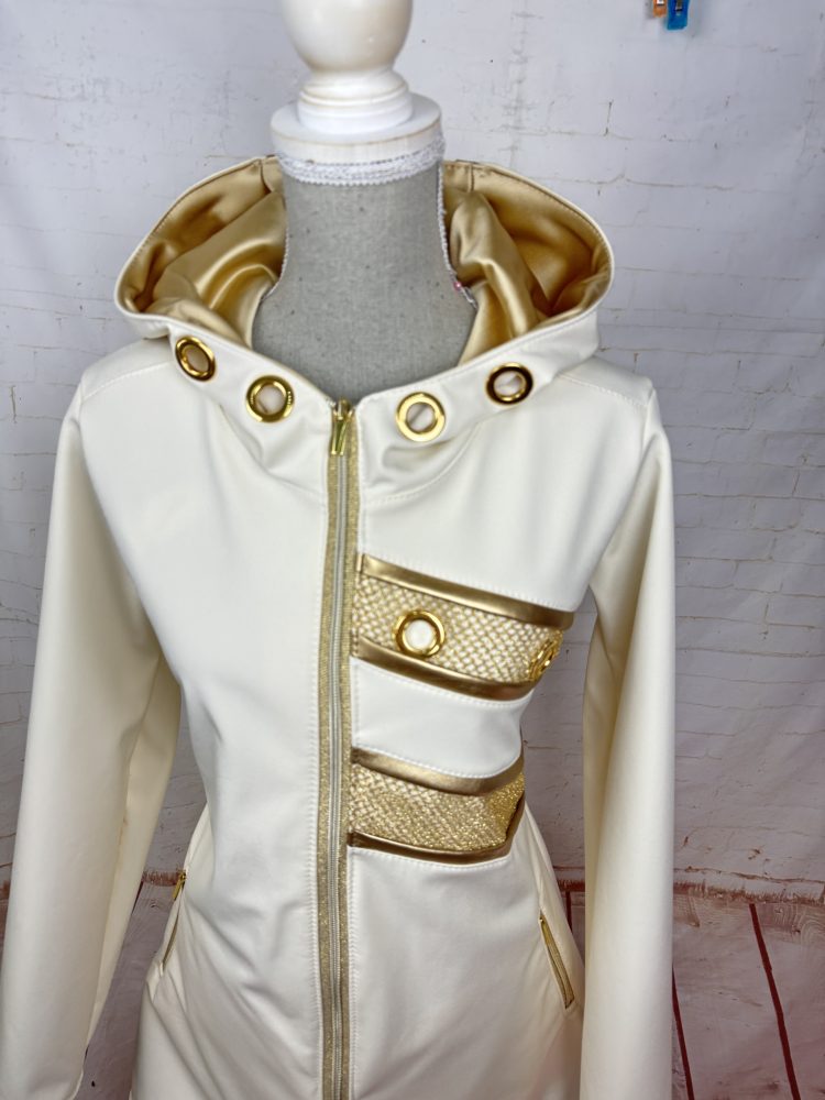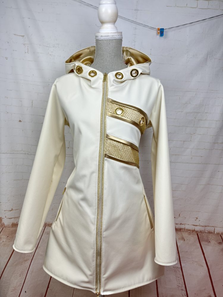 Ženska jakna iz mehkega toplega softshella ,različnih barvnih kombinacij ,vsi dodatki na jakni so vezeni na v oljo v zlati ,srebrni in gold rose barvi.